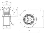 Центробежный вентилятор с одним воздухозаборным отверстием и с лопастями изогнутыми вперёд для промышленных систем охлаждения оснащён 2-полюсным или 4-полюсным однофазным конденсаторным двигателем с номинальным напряжением 230 В и частотой 50 Гц. Номинальный ток модели YWF-F4E-150 -0.34A, модели YWF-F2E-150 - 0.95A. Максимальная скорость вращения - до 2600 оборотов в минуту, максимальный расход воздуха достигает 660м3/ч. Класс изоляции двигателя - В или F.