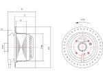 Центробежный вентилятор с одним воздухозаборным отверстием и с лопастями изогнутыми вперёд для воздухоочистителей может быть оснащён 4-полюсным однофазным конденсаторным двигателем или 4-полюсным трёхфазным асинхронным двигателем. Номинальное напряжение - 230В и 400В, номинальный ток - 0.52A и 0.26A соответственно.Частота - 50 Гц. Максимальный расход воздуха - до 1380м3/ч. Степень защиты двигателя - IP54 или IP44, класс изоляции – B или F.